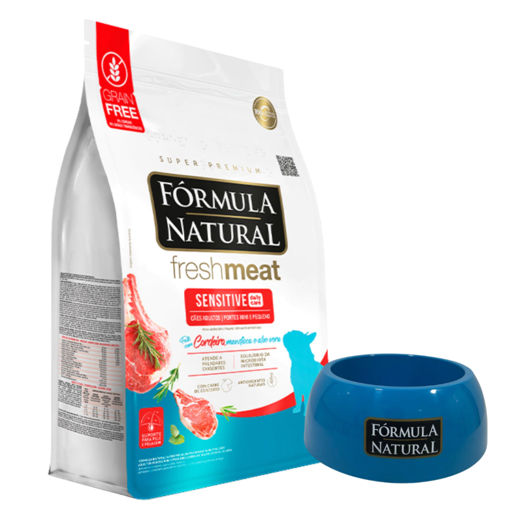 Carne selecionadas (carne de ovino e miúdos de ovinos) – mín. 15%, farinha de carne e ossos de ovino, farinha de mandioca (mín.20%), fécula de mandioca, farinha de ervilha, farinha de batata doce, proteína hidrolisada de frango, levedura de cervejaria inativada desidratada, extrato de leveduras, óleo de aves, óleo refinado de peixe, óleo de linhaça, óleo de girassol refinado, hidrolisado de fígado de aves e suíno, fibra de cana-de-açúcar, farelo de goiaba, frutas e vegetais desidratados (manga, maçã, cenoura), polpa de beterraba, cloreto de sódio, cloreto de potássio, biomassa de microalgas (Schizochytrium sp.), zeolita (0,01%), parede celular de levedura, frutooligossacarídeos, inulina, extrato de yucca (0,04%), colágeno hidrolisado (0,1%), sulfato de condroitina (0,01%), sulfato de glicosamina (0,03%), vitaminas (A, D3, E, K3, B1, B2, B5, B6, B12, C, niacina, ácido fólico, biotina, cloreto de colina), minerais (sulfato de ferro, sulfato de manganês, sulfato de zinco, iodato de cálcio, selenito de sódio, sulfato de cobre, proteinato de zinco, levedura enriquecida com selênio, proteinato de manganês), lisina, metionina, taurina, triptofano, ácido propiônico, extrato de aloe vera (0,01%), extratos de chá verde, hortelã e alecrim, cúrcuma, concentrado de tocoferóis (0,01%).