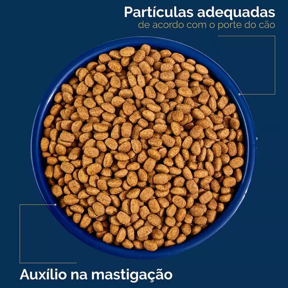 - Grãos com partículas menores de acordo com o porte do cão, e auxílio na mastigação;