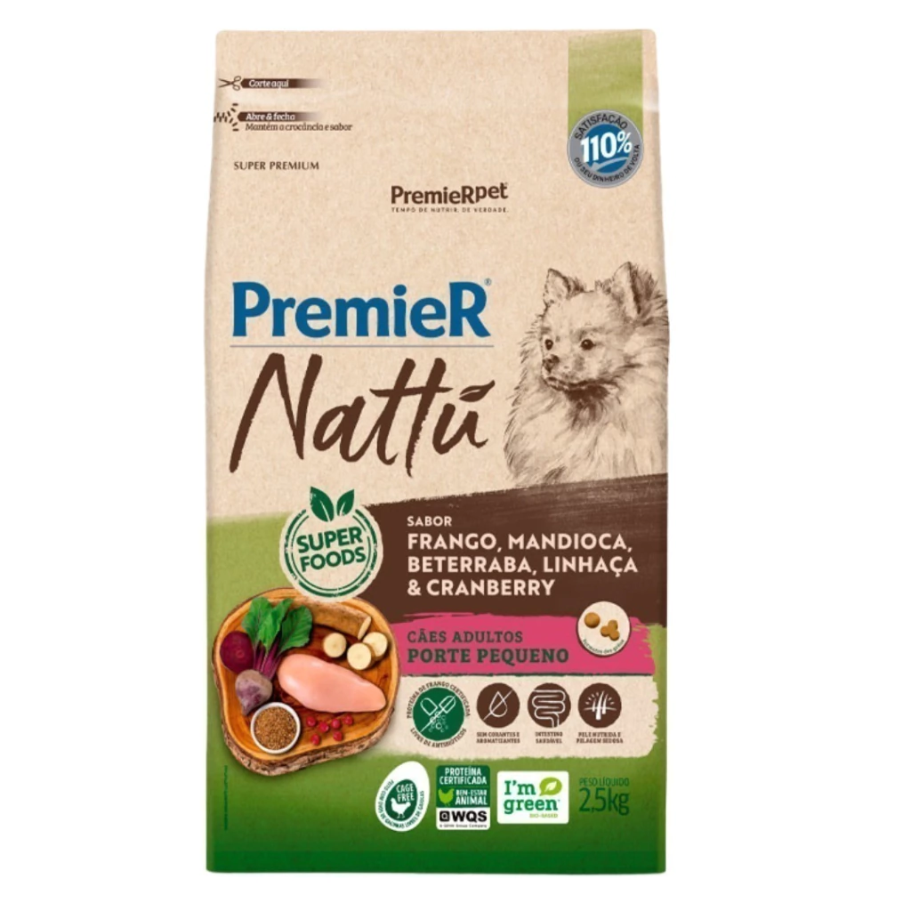 Farinha de vísceras de frango (25%), ovo desidratado - proveniente de galinhas livres de gaiolas (0,5%), glúten de milho – não transgênico, quirera de arroz, gordura de frango, óleo de peixe, complexo de vegetais -10,0% (polpa de beterraba, farinha de mandioca branca, beterraba desidratada, semente de linhaça, extrato de arando (cranberry desidratada) e extrato de Marigold), antioxidantes BHA e BHT (0,012%), bentonita, β-glucano, L-carnitina, cloreto de sódio, cloreto de potássio, extrato de yucca, hidrolisado de suíno e frango, levedura autolisada de cana-de-açúcar, mananoligossacarídeos (0,2%), metionina, taurina, vitamina A, vitamina B12, vitamina C, vitamina D3, vitamina E, vitamina K3, ácido fólico, ácido pantotênico, biotina, cloreto de colina, niacina, piridoxina, riboflavina, tiamina, cobre aminoácido quelato, ferro aminoácido quelato, iodeto de potássio, manganês aminoácido quelato, selênio metionina, sulfato de cobre, sulfato de ferro, sulfato de manganês, sulfato de zinco, zinco aminoácido quelato.
